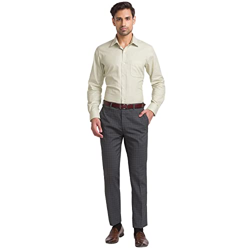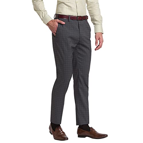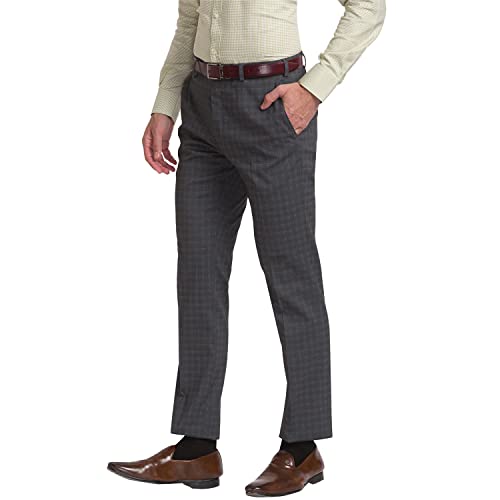 Raymond Men's Poly Viscose Blend Checks Pattern Slim Fit Flat Front Formal Trouser