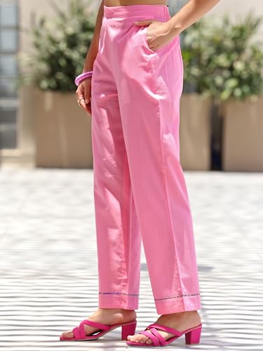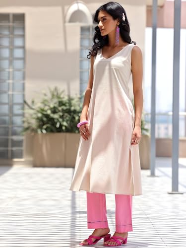Libas Yellow Self Design Silk Blend Straight Kurta with Palazzos & Dupatta
