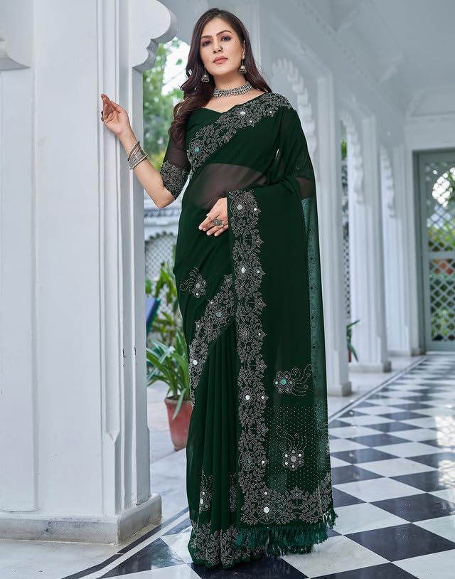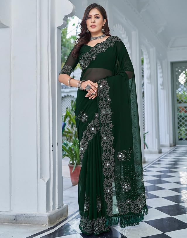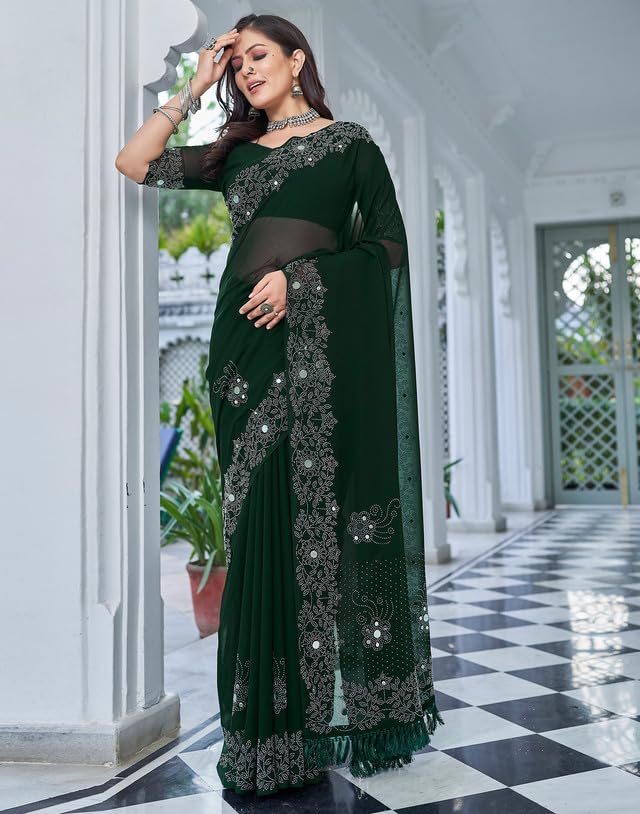 SIRIL Women's Dola Silk Foil Printed Saree With Unstitched Blouse Piece