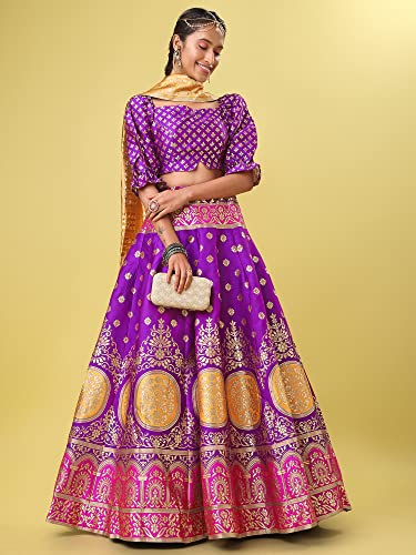 Zeel Clothing Womens Organza Lehenga Choli Semi-Stitched White Wedding Bridal Free Size