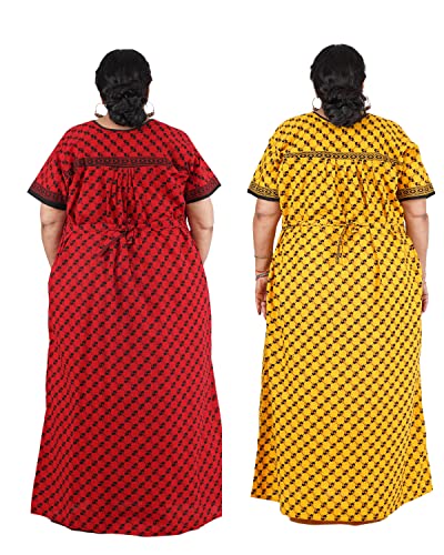 Evolove Women's Cotton Long Maxi Night Gown Nighty Dress with Pocket, Super Soft Comfortable (LNG-Cotton-2)