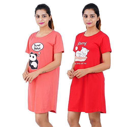 STYLEAONE Women Cotton Printed, Dark Blue & Pink (Pack of 2)