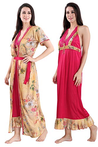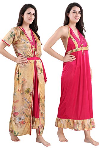 Style Dunes Kaftan Night Suit for Women - Kaftan Nighty - Printed Satin Night Suit Set for Women (Digital Print Pyjama Set)