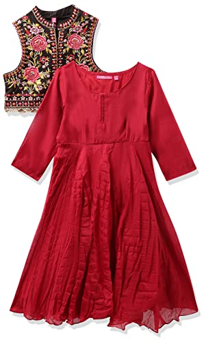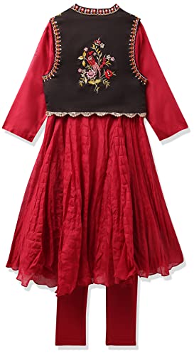 Miss Ethnik Women's Black Chinon Stitched Top with Chinon Dupatta Full Sleeve Embroidered Straight Kurta (ME-1212)