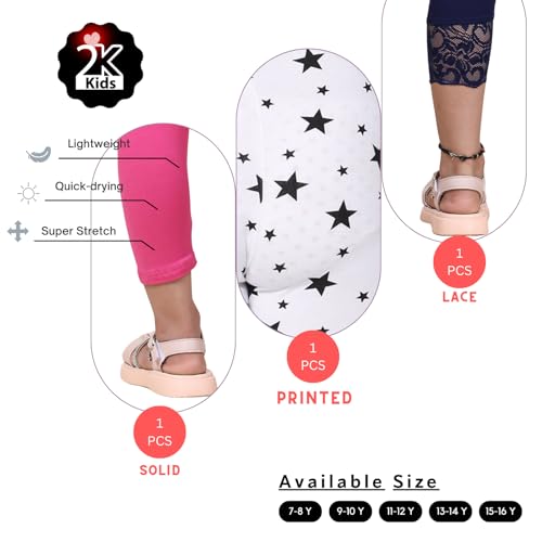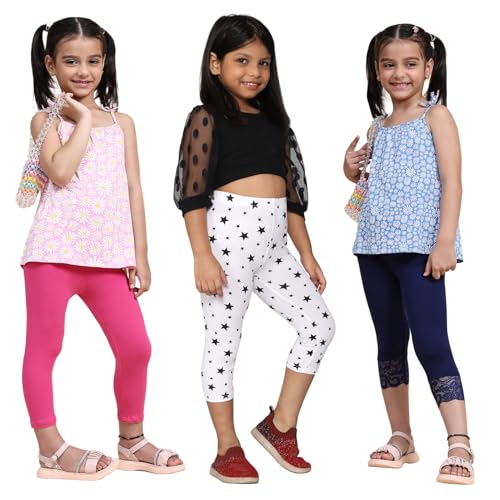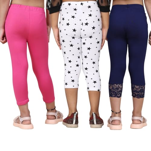 adibaba Girl's Cotton Printed Leggings Pack of 3
